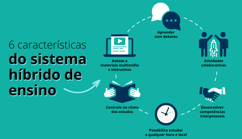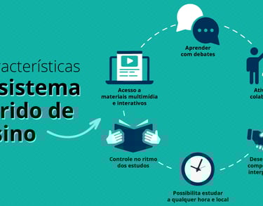 Neste modelo, parte das aulas acontece presencialmente e outra parte ocorre em ambientes virtuais, permitindo que os estudantes aprendam em seu próprio ritmo, com maior autonomia e acesso a conteúdos diversificados.
